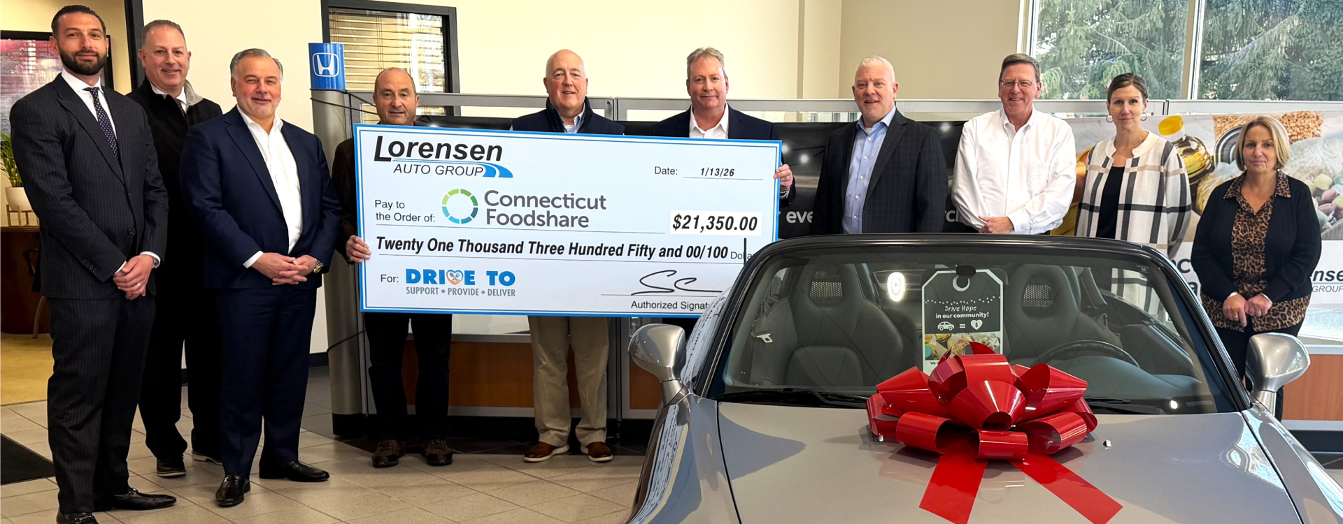 The donation represents proceeds from their annual Drive, Support, Deliver campaign, helping provide meals to Connecticut residents who are food insecure. Participating Lorensen Auto Group dealerships Acura of Avon, Acura of Milford, Honda of Watertown, Westbrook Honda, and Westbrook Toyota pledged a monetary donation for every car or truck sold between Black Friday and December 31, 2025. The Connecticut-based auto group has collectively raised over $86k in support of the organization since 2021.